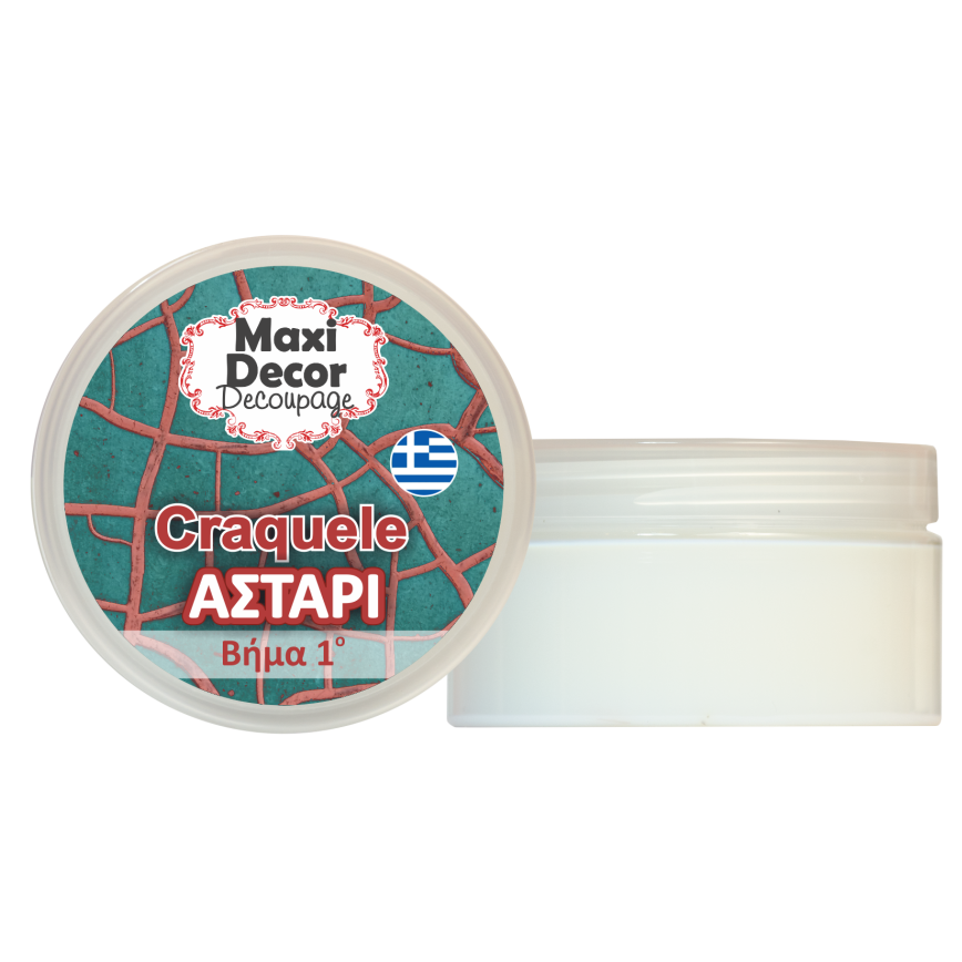 Το Craquele Αστάρι είναι το πρώτο βήμα της τεχνικής του ραγισμένου φινιρίσματος. Το γαλακτώδες υπόστρωμα βάσεως νερού, αποτελεί τη βασική στρώση. Εφαρμόζεται εύκολα με πινέλο ή σπάτουλα σιλικόνης σε 2 στρώσεις και όταν στεγνώσει γίνεται διάφανο. Όσο πιο πολλή η ποσότητα ασταριού, τόσο πιο έντονο και τρισδιάστατο το τελικό αποτέλεσμα.Κατάλληλο για όλες τις επιφάνειες, εκτός εάν είναι πορώδεις όποτε και συνιστάται το σφράγισμα της επιφάνειας με αστάρι Gesso. Ανακινήστε καλά πριν από κάθε χρήση. Έτοιμο προς χρήση.