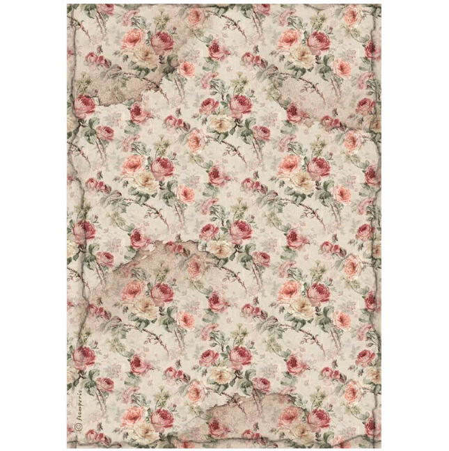 Ριζόχαρτο ντεκουπάζ Stamperia 21x29cm A4, House of Roses, Flowery fabric