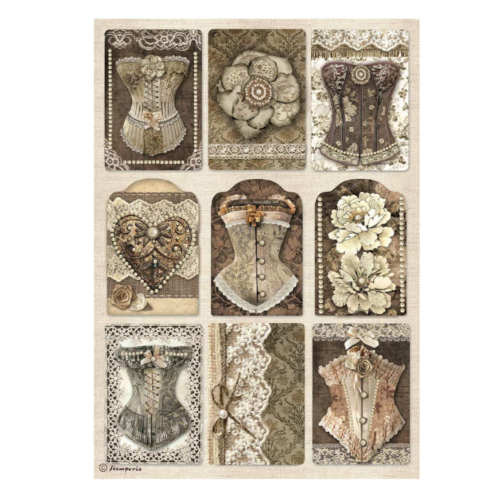 Ριζόχαρτο ντεκουπάζ Stamperia 21x29cm A4, Old Lace, Corset
